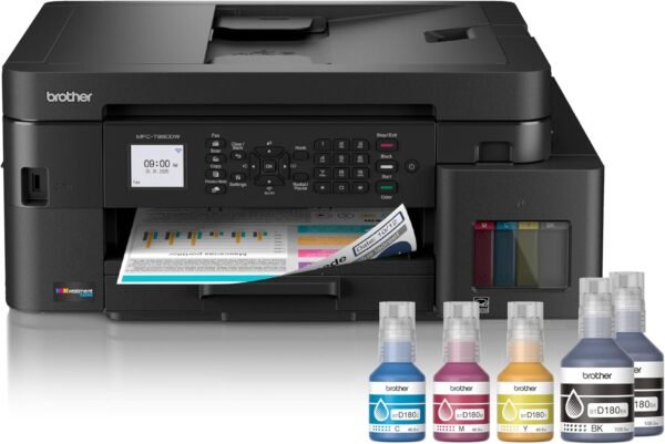 - INNOVATIVE REFILLABLE INK TANK TECHNOLOGY: Brother Genuine no-spill bottles quickly refill the tank in 30 seconds for color, 65 seconds for black. The design prevents inserting the incorrect bottles for each color. Includes up to 3 years of ink in-box(1).