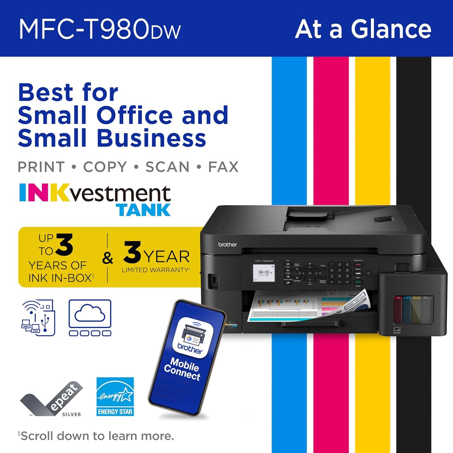 - BEST FOR SMALL OFFICE AND SMALL BUSINESS: This multifunction printer does it all, enabling you to print, copy, scan, and fax on one convenient, compact printer. Brother inkjet printers produce beautiful, vibrant color prints you can be proud of.